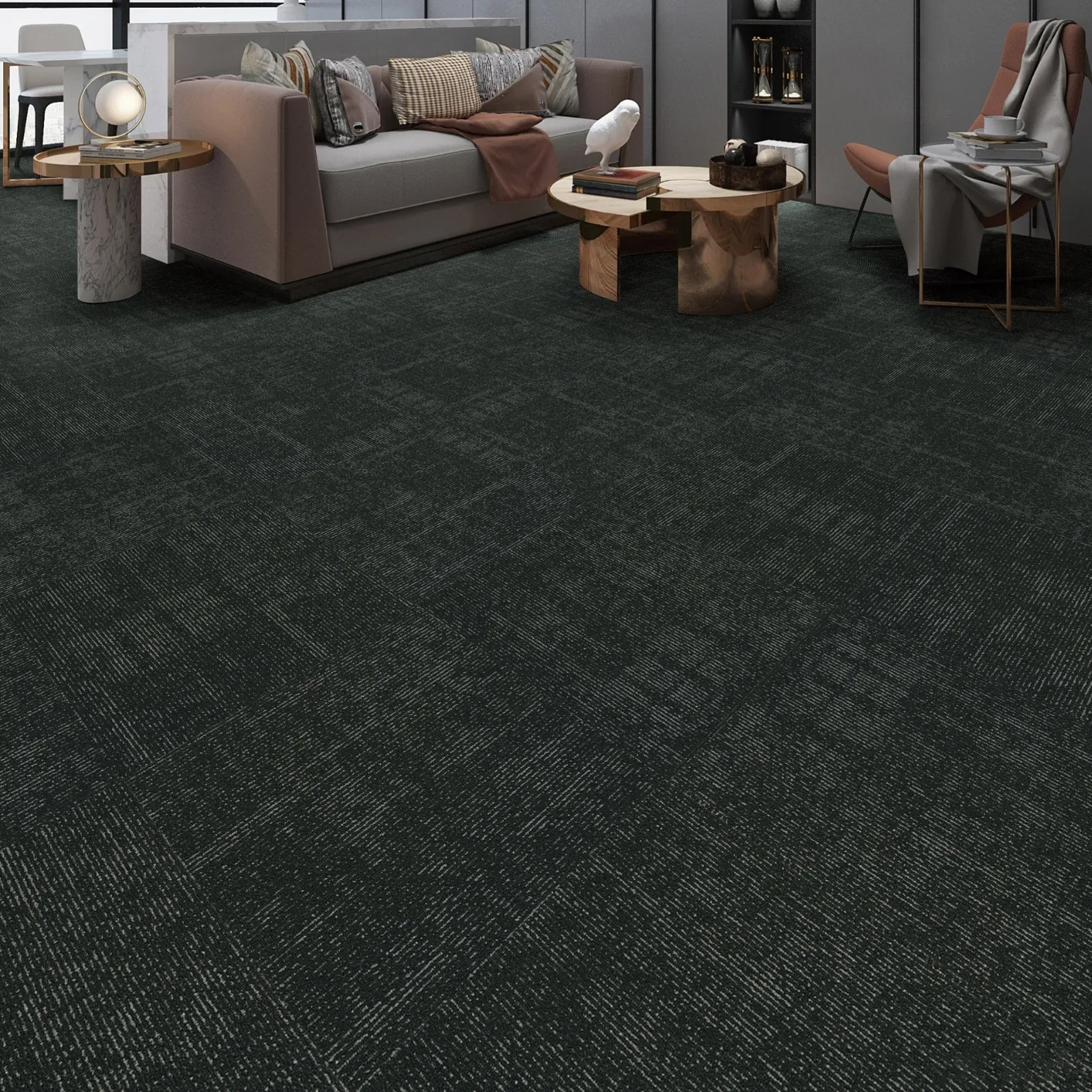 Elevate your commercial space with FOXFLOR Curve Series Carpet Tiles. Designed to rival leading brands in quality, our tiles offer unparalleled customization, durability, and value for offices, retail spaces, and corporate environments worldwide. Featuring sought-after gray tones and contemporary patterns, they combine aesthetics with high-performance.
